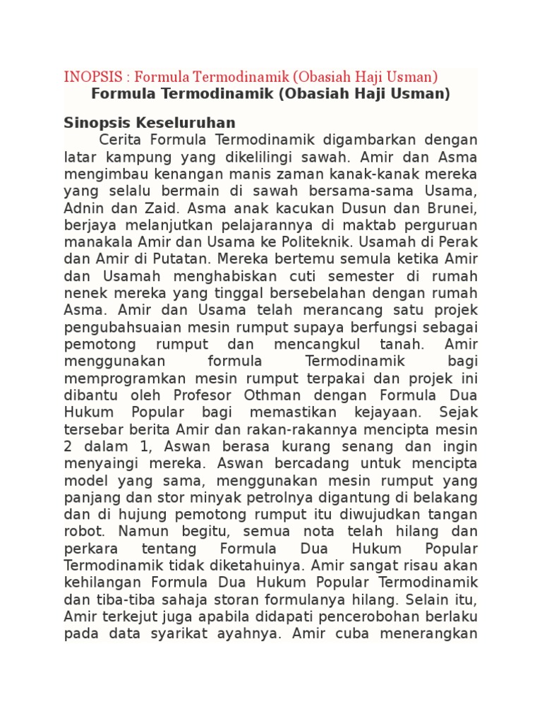 Sebagai contoh, amir dan usamah bekerjasama antara satu sama lain untuk mengubah suai mesin rumput terpakai menjadi mesin 2 dalam 1 berpandukan formula termodinamik berserta kreativiti dan inovasi. Sinopsis bab 1, 2, 3. Sinopsis novel perahu kertas sinopsis novelyang kedua adalah sinopsis novel perahu kertas berikut sinopsisnya: Sinopsis novel adalah ringkasan cerita novel. Copyright sinopsis keseluruhan cerita formula termodinamik digambarkan dengan latar kampung yang dikelilingi sawah.